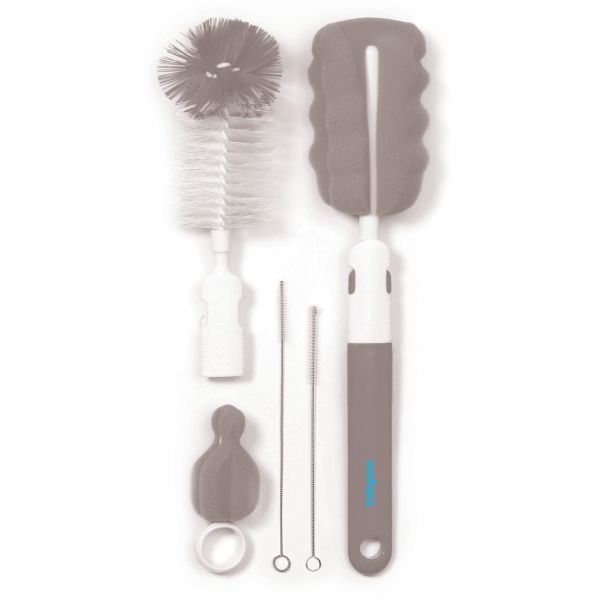 Το σετ περιλαμβάνει 2 κεφαλές-άκρα για τον καθαρισμό των μπιμπερών: μία με ένα απαλό βουρτσάκι και μία με ένα εύκαμπτο σφουγγαράκι. Μπορείτε να αγοράσετε και να τις αντικαταστήσετε όταν το θεωρήσετε απαραίτητο. Η ειδικά σχεδιασμένη λαβή της βούρτσας σας επιτρέπει να τη κρεμάσετε και να την αφήσετε να στεγνώσει. Είναι κατασκευασμένη από ασφαλή, ανθεκτικά και χωρίς BPA υλικά.