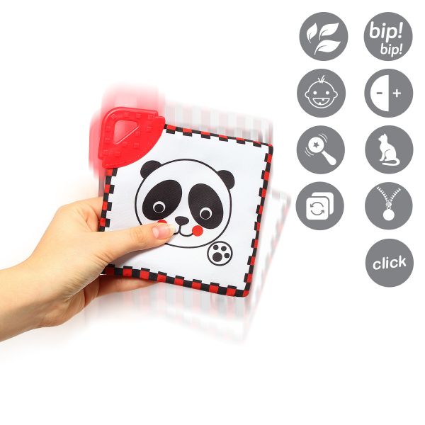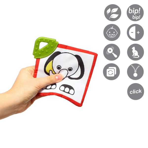 Είναι σούπερ απαλό και μαλακό, μπορούν εύκολα να το κρατήσουν τα μικρά χεράκια, διαθέτει μασητικό που διεγείρει αλλά και ανακουφίζει τα ούλα, διαφορετικές υφές και ήχο.