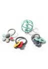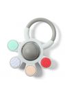 Ιδιαίτερο σχήμα σαν λουλούδι με διαφορερικές υφές στο κάθε πέταλο, μια μπαλίτσα στο κέντρο που περιστρέφεται και κάνει ήχο κουδουνίστρας και δακτύλιο για να μπορούν να το κρατήσουν εύκολα τα μικρά χεράκια. Το μωράκι αναπτύσει τις κινητικές του δεξιότητες, ενθαρρύνεται απο το παιχνίδι και να τονώνεται η ανάπτυξη του .