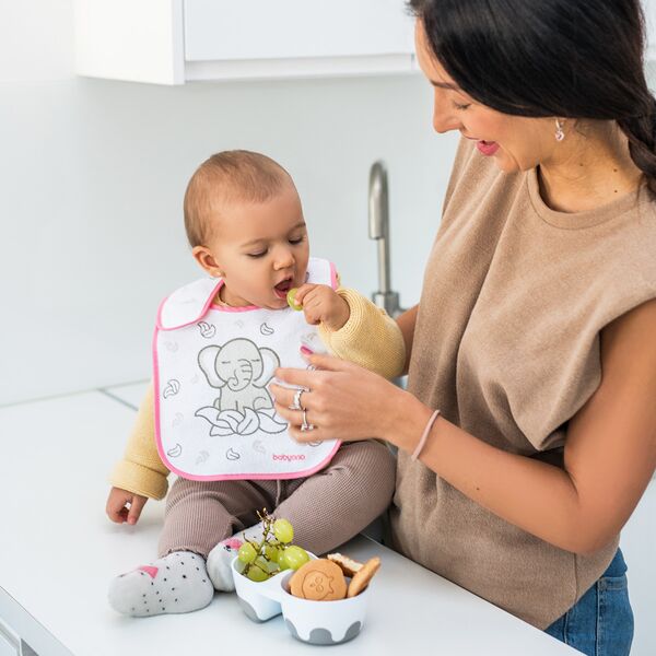 Κατασκευασμένη από απαλό βαμβάκι και επενδυμένη με αδιάβροχη βάση, κρατά τα ρουχαλάκια στεγνά και καθαρά σε κάθε γεύμα.