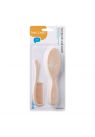 Το σετ βούρτσας και χτένας είναι σχεδιασμένο για τη μέγιστη φροντίδα του ευαίσθητου τριχωτού της κεφαλής του μωρού. Με εξαιρετικά λεπτές και απαλές τρίχες πάχους μόλις 0,1 mm, εξασφαλίζει ήπιο χτένισμα χωρίς ερεθισμούς, ενώ παράλληλα προσφέρει ένα ευχάριστο και χαλαρωτικό μασάζ.