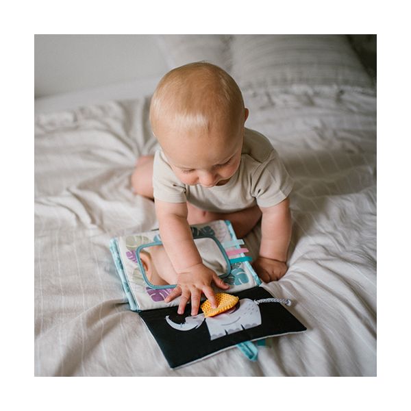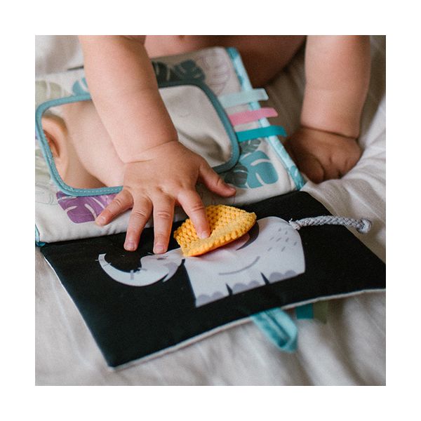 Το Safari βιβλιαράκι ενθαρρύνει το μωρό να παίζει μπρούμυτα, να σηκώνει το κεφαλάκι του και να ανακαλύπτει χρώματα, ήχους και υφές. Με ειδική βάση για να στέκεται παντού!