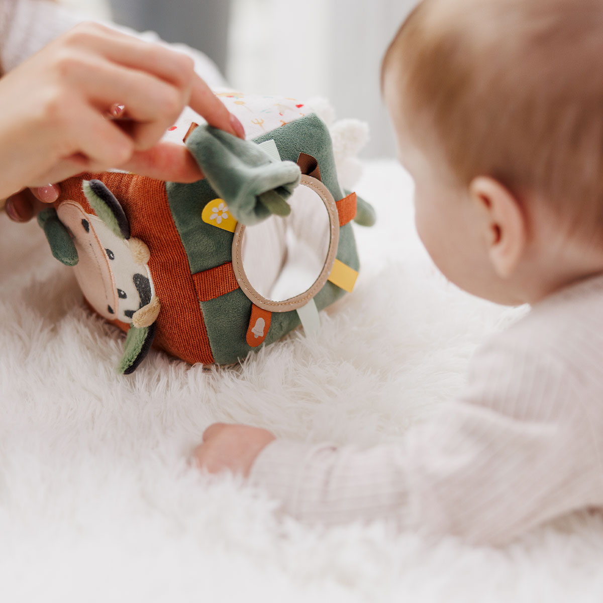 Ο βρεφικός αισθητηριακός κύβος δραστηριοτήτων κρατά το ενδιαφέρον του μωρού για πολλή ώρα, ενθαρρύνοντας την εξερεύνηση και τη συγκέντρωση. Με ήχους, διαφορετικές υφές, διαδραστικά στοιχεία και καθρέφτη, βοηθά το παιδί να αναπτύξει τις αισθήσεις και τις πρώτες γνωστικές δεξιότητες μέσα από το παιχνίδι.