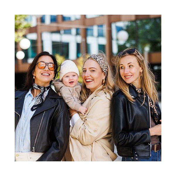 Συνοδεύεται από ένα εντυπωσιακό animal print φουλάρι. Μπορεί να διακοσμήσει την τσάντα ή να φορεθεί στα μαλλιά, στον λαιμό ή στο χέρι — ένα μοντέρνο αξεσουάρ για κάθε μαμά.