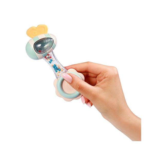 Η εργονομική κατασκευή επιτρέπει στο μωρό να κρατά εύκολα την κουδουνίστρα, ενώ το κούνημα βελτιώνει την κινητικότητα και τον συντονισμό.