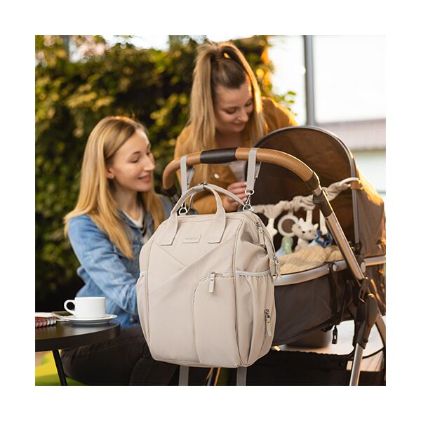 Φοριέται στην πλάτη, στο χέρι ή κρεμιέται εύκολα στο καρότσι χάρη στους ειδικούς ιμάντες. Για βόλτες, εκδρομές, το πανεπιστήμιο ή τη δουλειά.