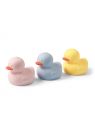 Το σετ περιλαμβάνει τρία προσεκτικά σχεδιασμένα παπάκια μπάνιου, το καθένα σε διαφορετικό παστέλ χρώμα. Κατασκευασμένα από μαλακή, ευχάριστη στην αφή σιλικόνη, διαθέτουν άνοιγμα στο ράμφος που επιτρέπει το πιτσίλισμα του νερού. Ο εργονομικός τους σχεδιασμός και τα ευχάριστα χρώματα ενθαρρύνουν το μωρό να εξασκήσει τις δεξιότητες κράτησης και να παίξει με χαρά.