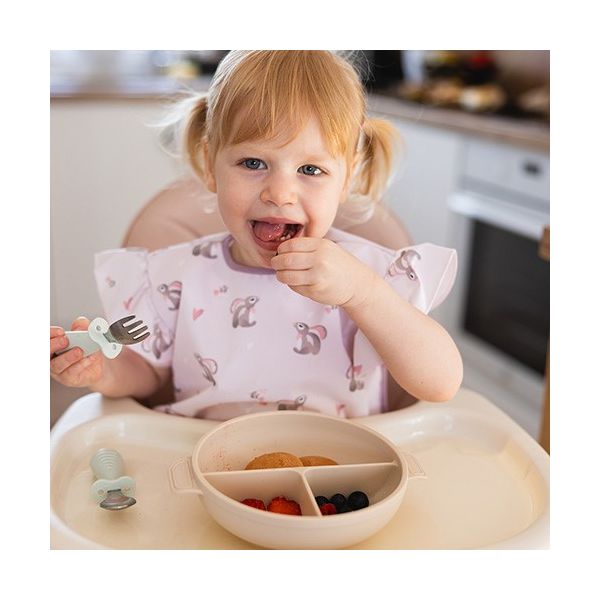 Οι φαρδιές και στρογγυλεμένες λαβές με εξογκώματα είναι σχεδιασμένες για μικρά χέρια. Το ελαφρύ σετ διασφαλίζει άνετο κράτημα και διευκολύνει την αυτονομία στο φαγητό, βοηθώντας στην ανάπτυξη δεξιοτήτων.