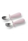 Η κουτάλα και το πιρούνι είναι κατασκευασμένα από ανθεκτικό και αντιδιαβρωτικό ανοξείδωτο ατσάλι, ενώ οι λαβές από BPA-free σιλικόνη τροφίμων παρέχουν μη-ολισθηρό κράτημα και αντοχή στον χρόνο.
