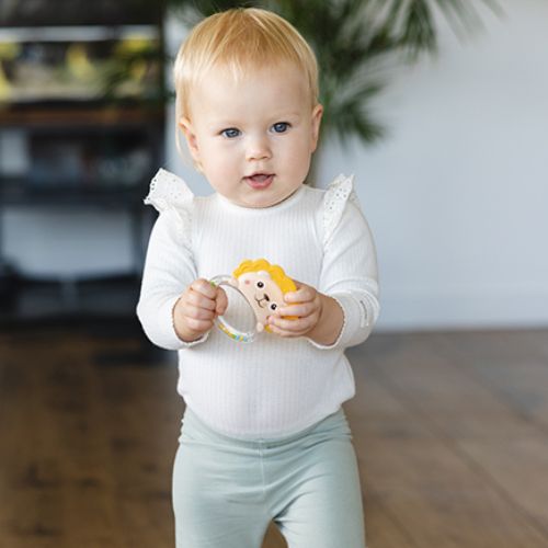 Η κουδουνίστρα Λιονταράκι είναι το ιδανικό πρώτο παιχνίδι για νεογέννητα και βρέφη. Κατασκευασμένη εξολοκλήρου από ασφαλή, ανθεκτικά και ευχάριστα στην αφή υλικά, βοηθά το μωρό να εξερευνήσει τον κόσμο με ασφάλεια και χαμόγελο.