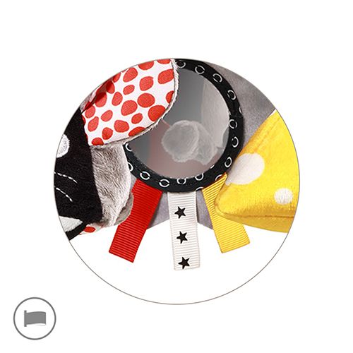 Το κρεμαστό παιχνίδι είναι σχεδιασμένο για βρέφη 0+, συνδυάζοντας ήχους, υφές, κίνηση και καθρέφτη για ολοκληρωμένη αισθητηριακή εμπειρία.