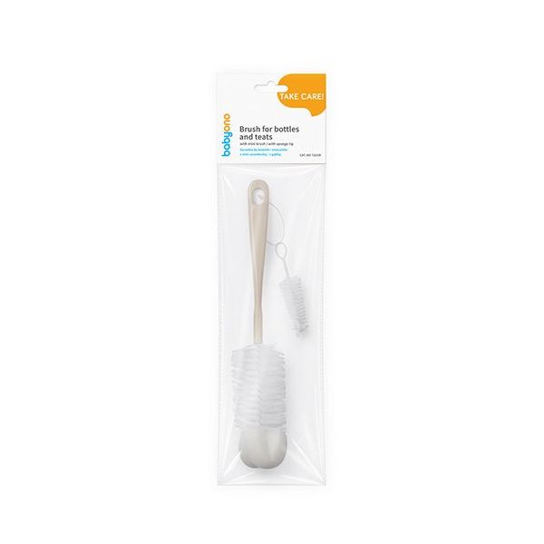 BabyOno: Σετ βούρτσα για μπουκάλια και θηλές με μίνι βουρτσάκι και σφουγγάρι- Μπεζ