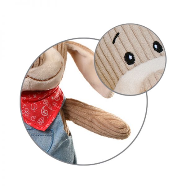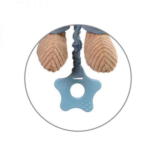Το μωρό σας μεγαλώνει και θέλει να εξερευνήσει τον κόσμο γύρω του. Το μουσικό παιχνίδι με μασητικό είναι ο ιδανικός σύντροφος για την καθημερινή του ανάπτυξη και την ανακούφιση από την οδοντοφυΐα. Κατασκευασμένο από μαλακό κορδόνι ύφασμα σε τζιν απόχρωση με απαλό μαντήλι στον λαιμό, το παιχνίδι αυτό τραβά την προσοχή του μωρού μέσα από διάφορες υφές και συνοδεύεται από μια γλυκιά μελωδία που το ηρεμεί.