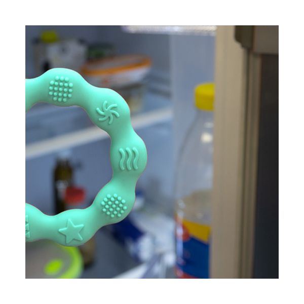 • Διαθέτει διαφορετικές επιφάνειες και υφές που προεξέχουν, ώστε να παρέχει ανακούφιση κατά την ανάπτυξη των πρώτων δοντιών. Δίνει την αίσθηση μασάζ στα ούλα και τα ανάγλυφα σχέδια εξασφαλίζουν αισθητηριακά ερεθίσματα