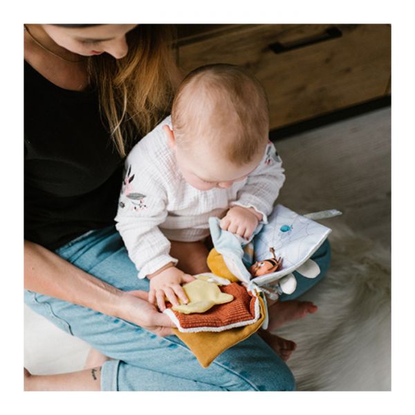 Το αισθητηριακό βιβλίο Nature συναρπάζει και κρατά το μωρό απασχολημένο για πολλή ώρα. Με έξυπνα κρυμμένα στοιχεία, ήχους, καθρέφτη, κορδελίτσες και αφαιρούμενα μέρη, ενθαρρύνει τη συγκέντρωση, το λογικό συλλογισμό και την πολυαισθητηριακή ανάπτυξη από τις πρώτες ημέρες ζωής. Μια τρυφερή γνωριμία με τη φύση, σε μορφή παιχνιδιού.