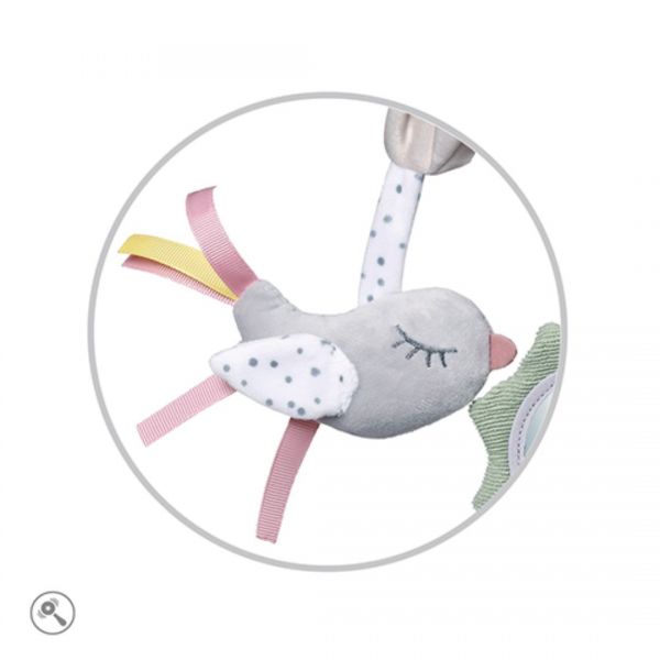 Αυτό το μοναδικό παιχνίδι συνδυάζει κουδουνίστρα, καθρέφτη, κορδελίτσες και μασητικά σε ένα πρακτικό κρεμαστό παιχνίδι! Ιδανικό για να κρεμαστεί όχι μόνο στο καρότσι, αλλά και στην κούνια, το παρκοκρέβατο ή το κάθισμα αυτοκινήτου. Με αυτό, οι βόλτες γίνονται πιο διασκεδαστικές και το μωρό σας απασχολείται δημιουργικά.